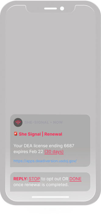She Signal provides SMS-first monitoring for professional licenses and regulations across 100+ state boards, suppliers and government agencies so you never miss what's critical.